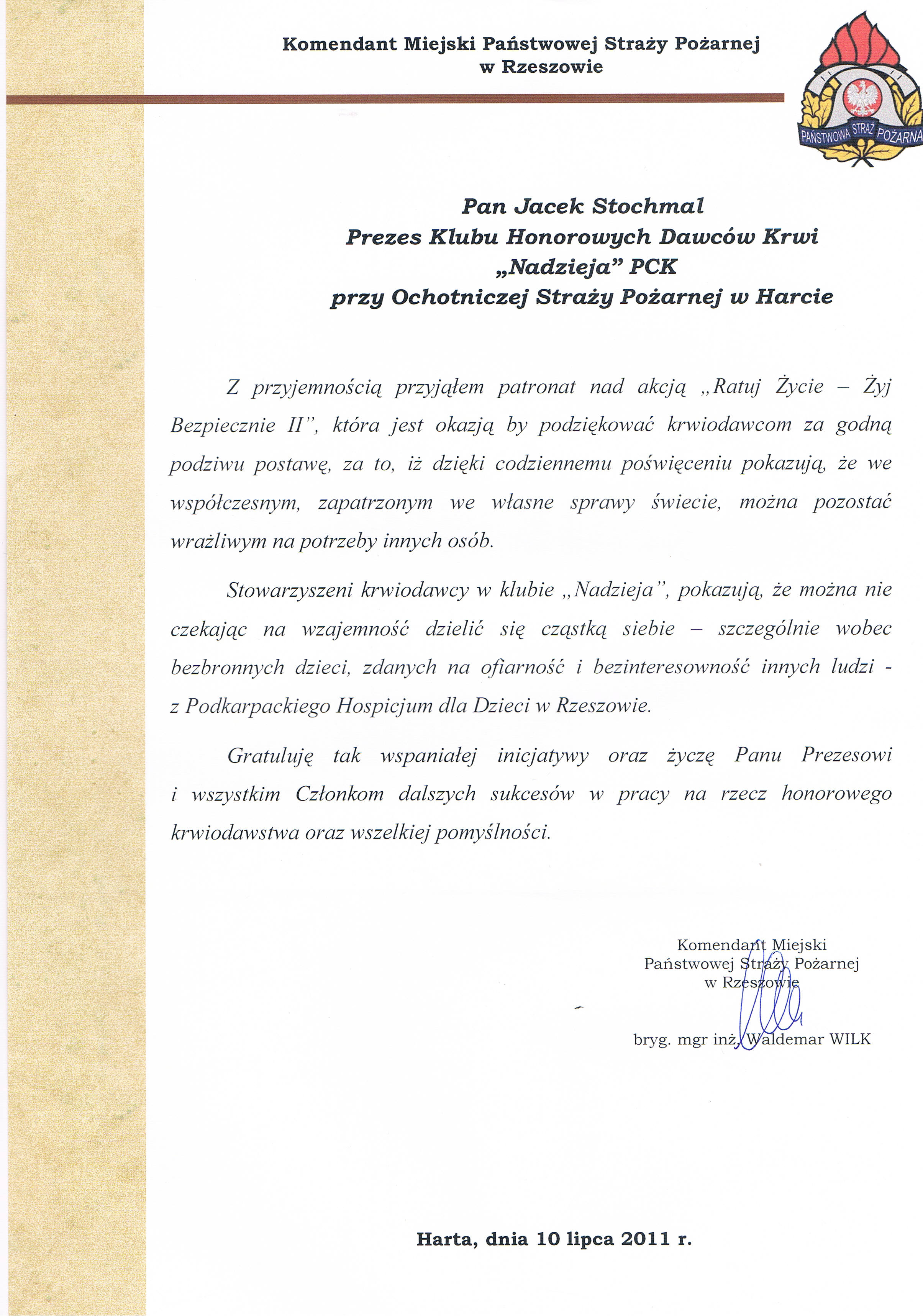 PATRONAT OD KOMENDANTA MIEJSKIEGO PSP RZESZÓW 2011
